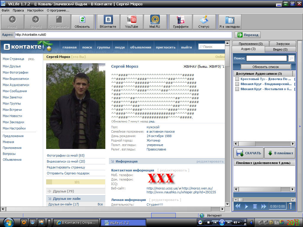 VKLife версия 1.7.1 - универсальная программа для скачивания музыки, видео, приложений с сайта ВКонтакте.РУ, YouTube.com и Mail.RU