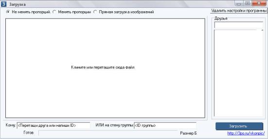Позволяет загружать картинки на стены пользователей сайта vkontakte.ru